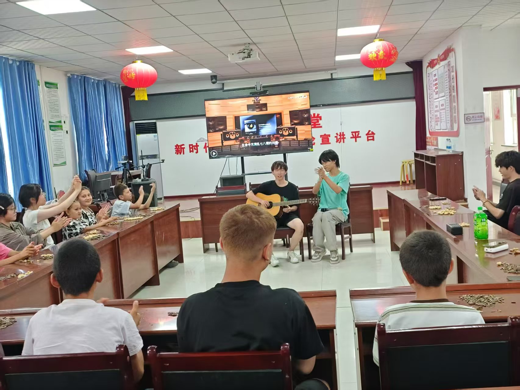 聚焦青少年成长需求,推进乡村教育服务为丰富乡村青少年暑期生活,助力青少年思想道德建设,实践团组织乡村青少年开展主题教育与文艺实践活动。首次活动以“爱国教育+文艺互动”为核心,通过文艺表演、趣味游戏等形式激发青少年参与热情,同步开展爱国故事宣讲、爱国歌曲教唱等活动,将爱国主义精神融入互动环节,引导青少年厚植爱国情怀;第二次活动增设绘画创作等实践项目,鼓励青少年发挥创造力,在实践中提升审美素养与实践能力,切实为乡村青少年成长提供优质服务。