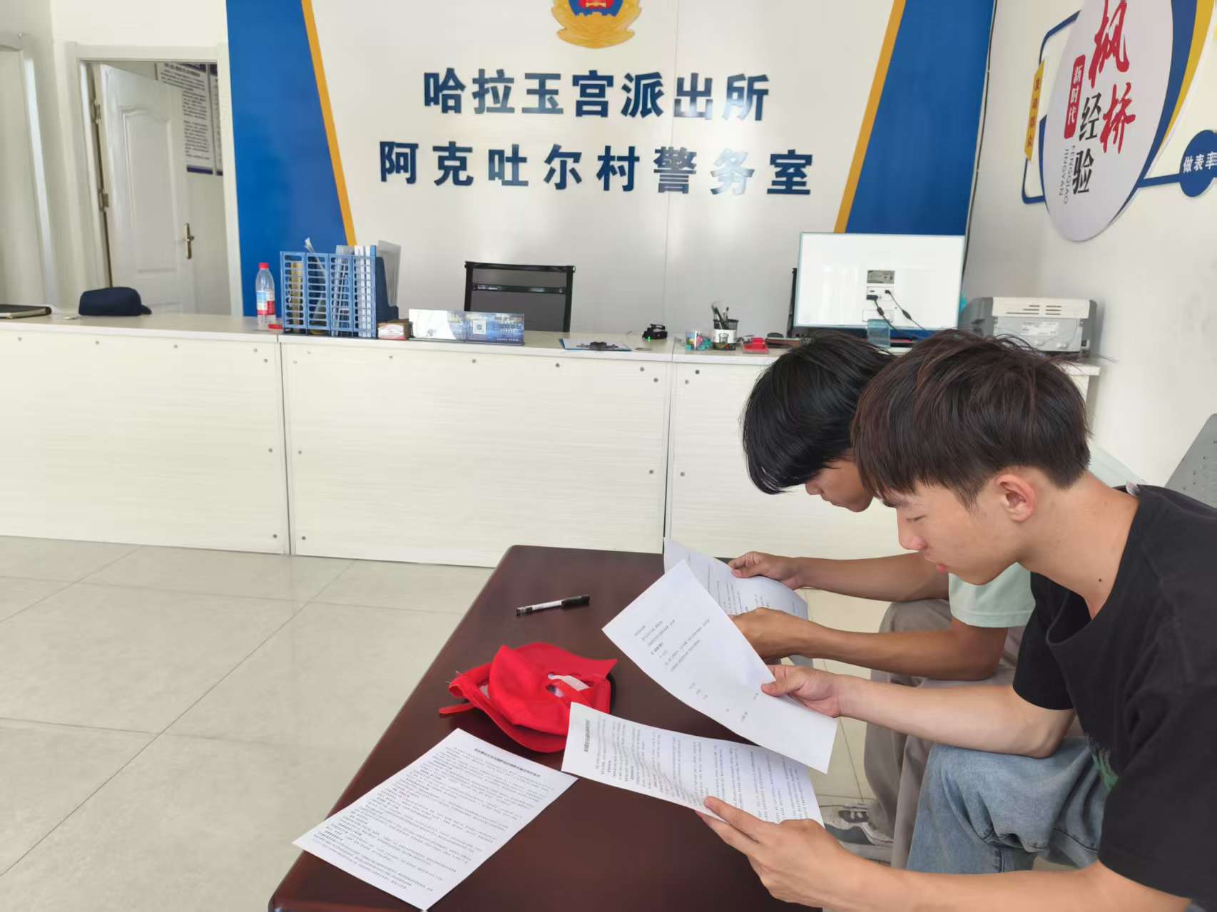 助力基层政务治安建设,夯实乡村治理基础实践团抵达哈拉玉宫乡后,第一时间与当地村委会对接,主动承接基层政务辅助工作,全力配合村委会提升工作效能。在残障补贴身份信息整理工作中,团队成员严格遵循核对规范,确保数据精准无误,为基层政务工作高效推进提供有力支撑;同时,协助村委会开展道路监控实时巡查工作,为乡村治安管理与道路安全保障贡献力量,进一步夯实乡村治理根基。