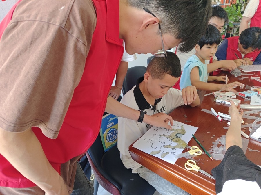 "皮影不仅是娱乐,更是承载文化的活化石。"志愿服务团负责人介绍,团队特别邀请当地皮影传承人录制教学视频,在活动中穿插讲解皮影戏的唱腔、剧目和历史。孩子们在动手实践中,逐渐理解"一口叙说千古事,双手对舞百万兵"的艺术魅力,感受到传统技艺背后的文化底蕴。活动尾声,孩子们捧着亲手制作的皮影合影留念,社区工作者们纷纷点赞:“这种寓教于乐的方式,让孩子真正走进非遗,比单纯的说教更有感染力。”此次活动不仅培养了孩子们的动手能力和创造力,更通过沉浸式体验,在幼小的心灵中播撒下文化传承的种子。