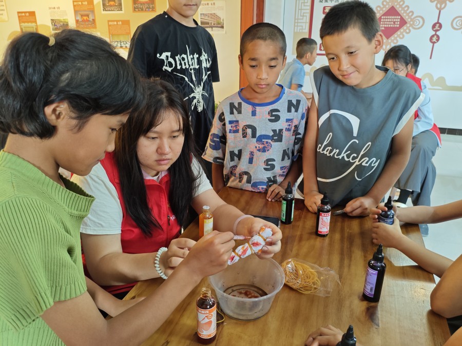 志愿服务团负责人表示:“把扎染非遗带入红领巾小课堂,不仅是让孩子们体验手工乐趣,更希望他们能在动手过程中,感受传统工艺的智慧与美感,在心里种下传承文化的小种子。”