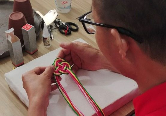 在技艺展示环节,杨文艺老师现场演示了平结、十字结、吉祥结等基础技法。五彩绳线在他手中灵动翻转、缠绕,仿佛被赋予生命,片刻间便化作一个个精致规整的绳结。团队成员围站四周,目光紧锁老师的双手,生怕错过任何一个细节,。杨老师放慢动作、细致拆解步骤,用通俗易懂的讲解,让绳编技艺的奥秘层层铺展。进入实操环节,成员们纷纷上手尝试。杨老师穿梭在成员间,俯身指导、亲手示范,帮大家理顺绳线、纠正手法。在老师的耐心帮扶下,成员们渐入佳境,指尖与绳线的摩挲间,大家不仅触摸到绳编技艺的独特魅力,更深刻体会到非遗传承背后,匠人们日复一日的艰辛与执着。