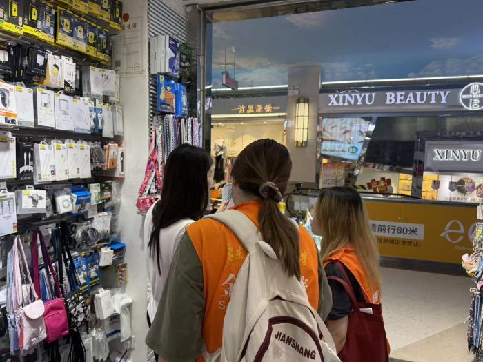 老商圈的绿色金融初体验随着调研深入,队员们来到沙园街道江南新地商业街。这条建成于2003年的地下商业街,为调研提供了丰富样本。七月的广州骄阳似火,但商户们仍热情配合调研工作。