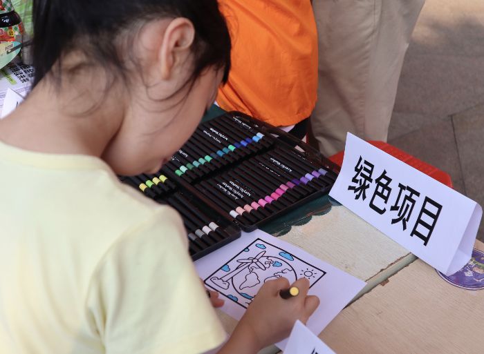 图为小朋友用画笔勾勒绿色未来。宋佳悦 供图