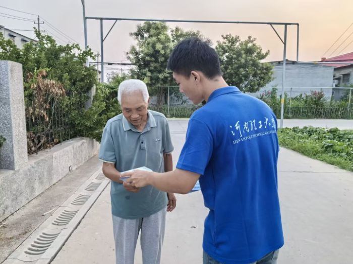 当日下午,实践团12名成员整装从河南理工大学出发,历经半小时车程抵达河南省焦作市孙村。在村口大槐树下,几位闲聊的村民见实践团成员背着行囊、手持笔记本走来,便询问其来意。团队成员回应:“老乡们,我们是河南理工大学的学生,此次前来是想了解大家对无人机打药、撒肥等技术的看法。”