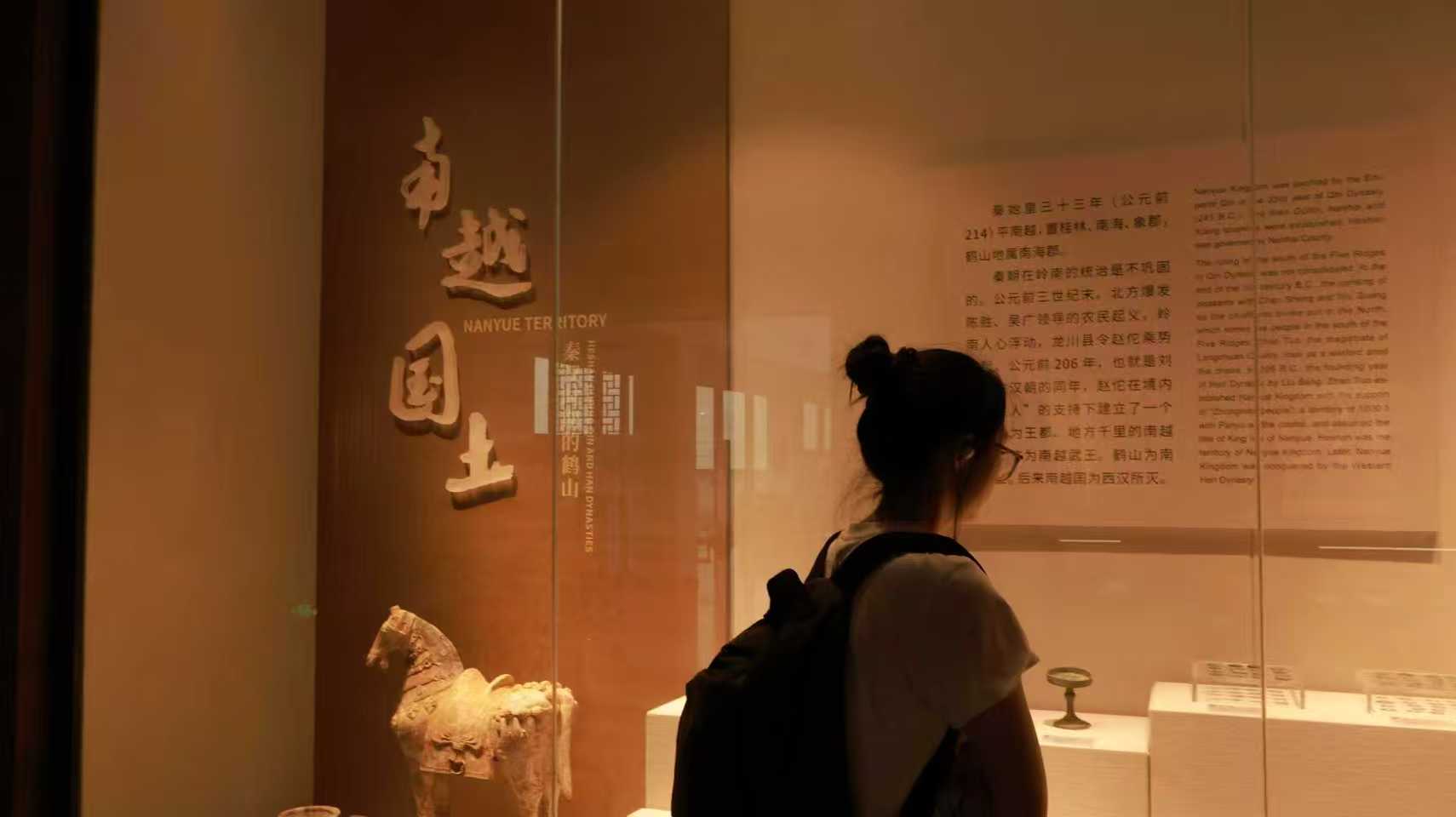 活动期间,服务队还走进鹤山市博物馆,开展文化调研。从新石器时代的石器陶器,到明清时期的农耕器具、侨批文献,队员们通过一件件展品,深入了解鹤山的历史底蕴和人文精神。在“古劳水乡”复原场景前,队员们感叹道:“水乡文化不仅是鹤山的独特符号,更蕴含着人与自然和谐共生的智慧。”此次文化之旅,不仅拓宽了队员们的视野,也让他们更加坚定——环保事业需要扎根于地方文化,才能焕发持久生命力。