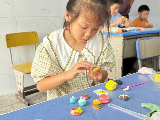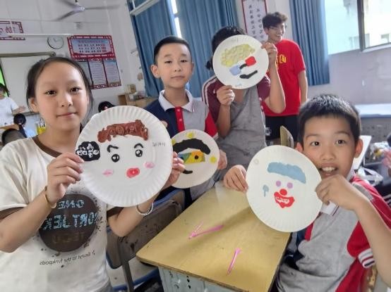 手工课上的欢呼声总是格外响亮。当五颜六色的超轻黏土分发到手中时,孩子们的眼睛瞬间被点亮。在“情绪脸谱”单元,志愿者引导孩子们用不同颜色表达情感:愤怒的红鼻子、开心的弯月眼、害羞的粉红脸蛋……平日最顽皮的身影在彩泥间安静专注——小手攥紧的黏土里,有人捏出支教老师鼻梁上的眼镜,有人复刻母亲离别前的面容,而那个咧到耳根的明黄脸谱,正是留守儿童脸上绽放笑容的生动写照。