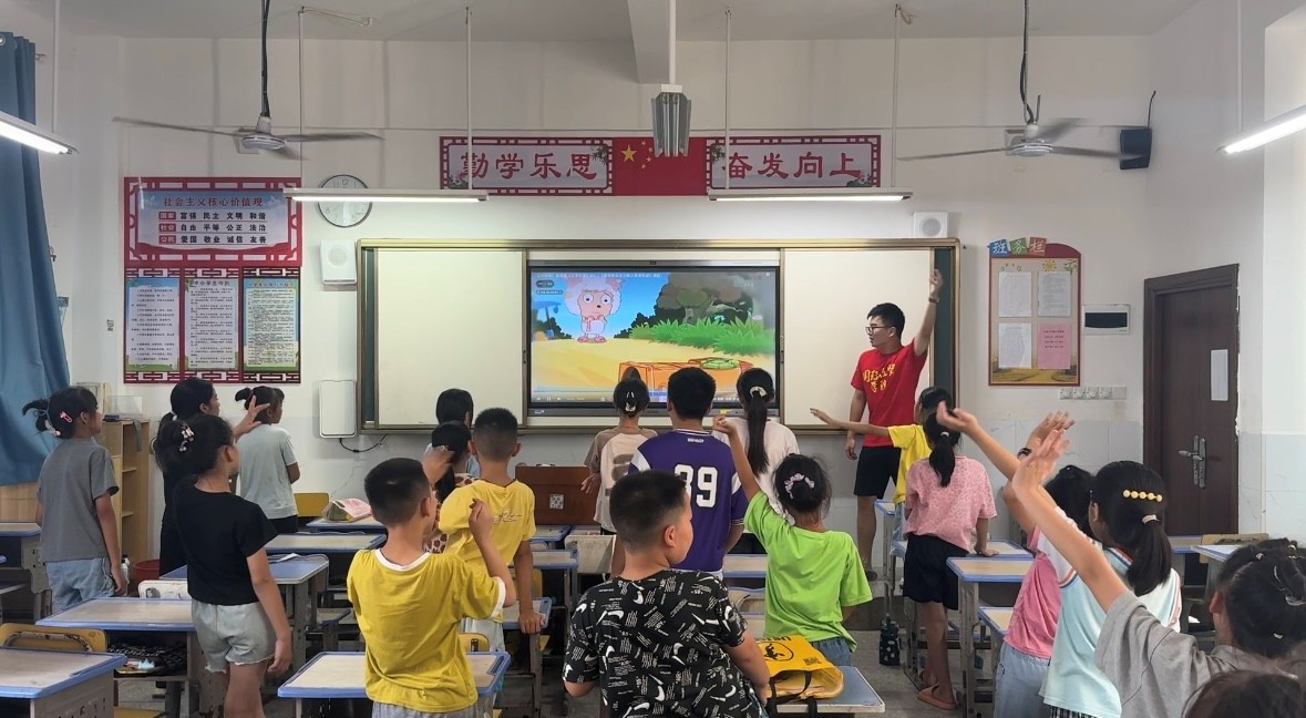 在音乐课堂上,志愿者与孩子们共同唱响《左手右手》。“当你的手拉着我的手,团结的力量彼此感受……”充满力量的歌声与整齐的拍手声在校园回荡,传递着团结协作的精神和对未来的美好期许。