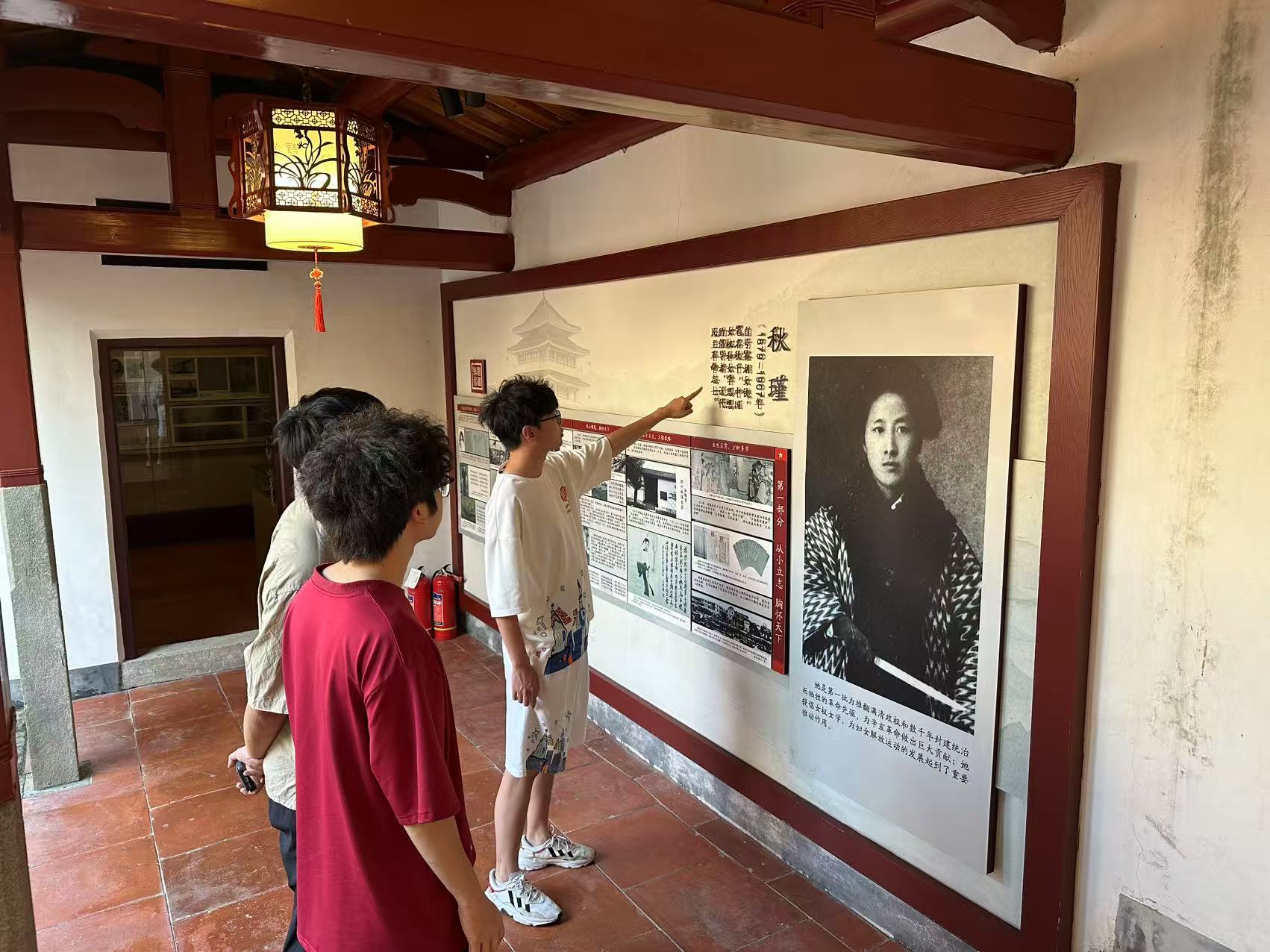 五、缅怀先烈志,传承红色薪火 实践的最后一站,我们来到秋瑾故居。古朴的院落静静矗立,院内的史料与展品无声诉说着秋瑾先生为革命事业英勇献身的崇高精神。队员们驻足凝视,轻声阅读着文字介绍,心中满是崇敬与感动。在这里,我们不仅缅怀先烈,更在心中立下誓言:要将秋瑾先生的爱国情怀、革命精神传承下去,以青春之我担时代之责。