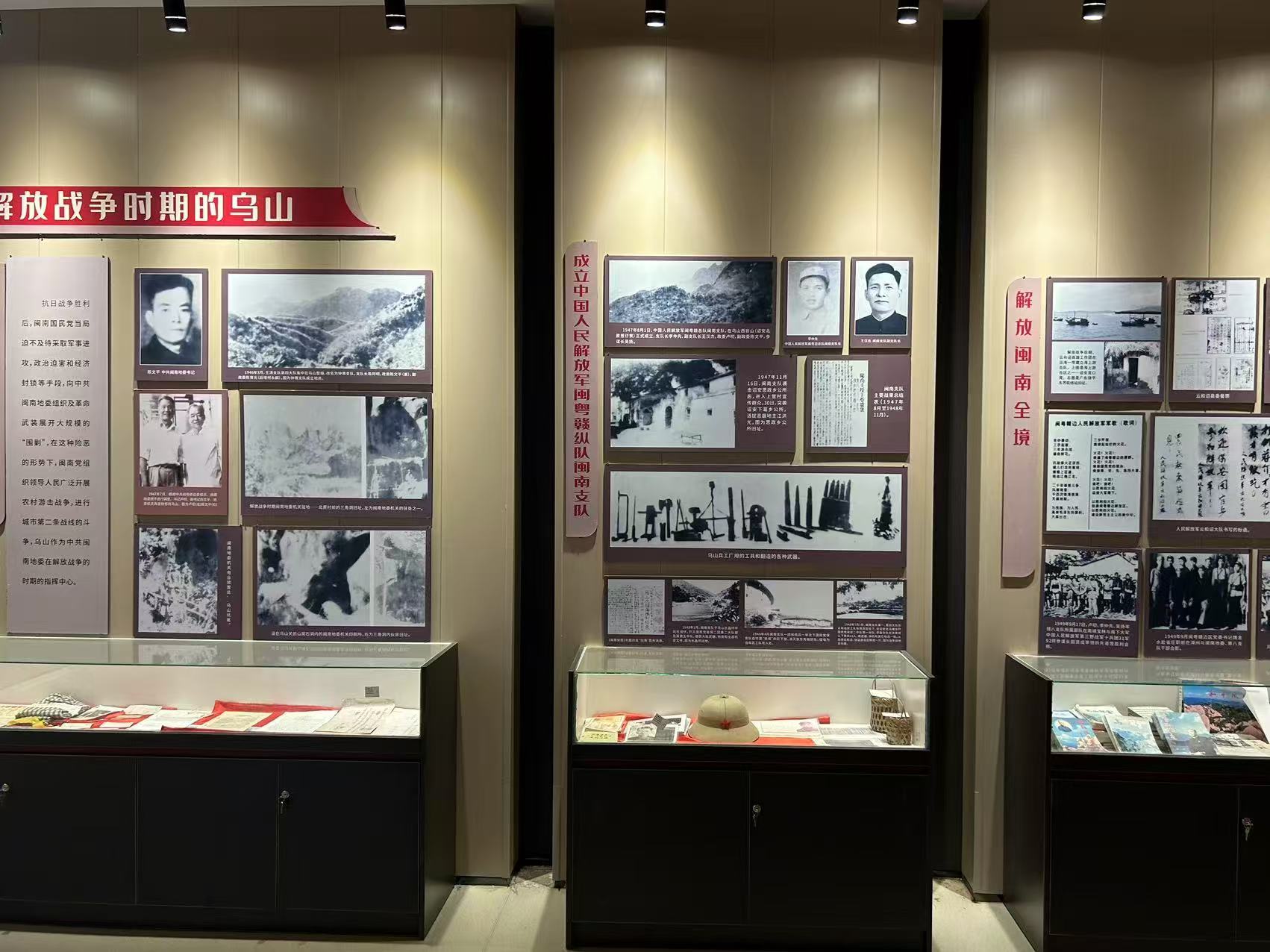 三、探访根据地,回望烽火岁月 抵达乌山革命根据地,“乌山写生创作基地”的古朴氛围瞬间将我们带回那段烽火岁月。走进纪念馆,一幅幅泛黄的老照片、一件件承载记忆的旧物、一段段震撼人心的文字,串联起乌山的革命征程——从土地革命时期的星星之火,到三年游击战争的顽强坚守,再到解放战争的胜利曙光。队员们围在展柜前,认真聆听讲解员的介绍,不时驻足沉思,仿佛置身于当年的战斗场景,深刻读懂了“今日幸福生活来之不易”的重量。