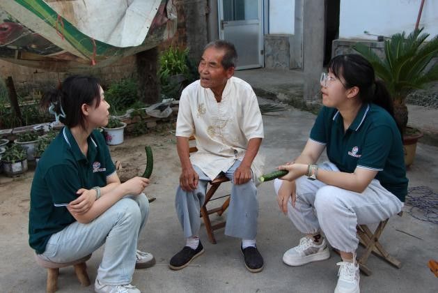 另一方面,在和村社区党总支副书记赵永莲的协助下,团队寻访了4位见证和村发展的“身边榜样”——带领村民打造“万亩果园”的“安徽好人”老支书刘长礼、敢为人先的“苹果大户”张丙明等。通过与他们深入交流,团队详细记录和村苹果产业从无到有、从弱到强的发展历程,挖掘出乡村振兴背后的奋斗精神。实践团队将这些素材融入后续推普课程的核心内容,实现语言学习与红色基因传承的双重目标。