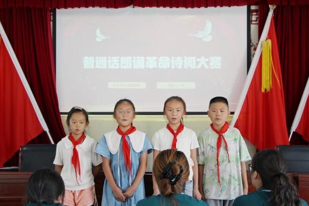 红色文化浸润与心理健康引导贯穿全程。7月19日,团队开展“普通话革命诗词朗诵”“红色主题演讲”“红歌演唱”活动,同步举办“童心向党・笔墨传情”红色诗词书法大赛,优秀作品通过“书法电子展”传播。孩子们在活动中提升语言表达能力,更在重温历史中增强家乡认同感与自我价值感。