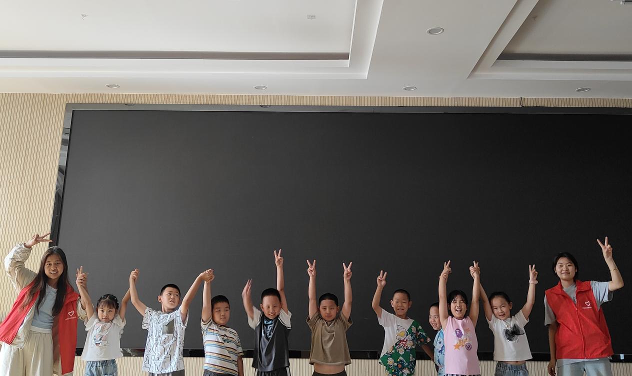 当排练告一段落,实践团成员与孩子们齐聚场地中央,共同定格下充满成就感的瞬间。高举的"耶"字手势、绽放的灿烂笑容,诉说着排练中的欢笑与坚持。尽管过程中难免遇到挑战,但彼此信任的眼神、相互鼓励的话语,早已将团队凝聚成温暖的集体,为这场关于爱与成长的舞台之旅注入无限力量。