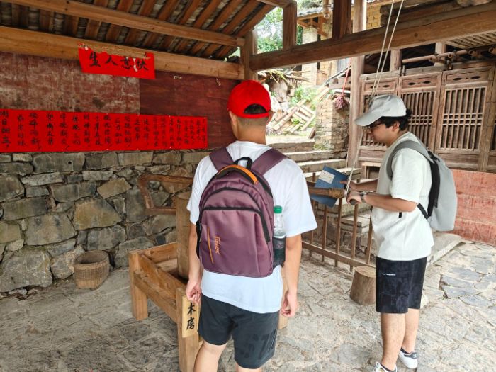 为了让更多人了解东漓古村的特色非遗与古建文化,同学们还利用现代科技手段,通过拍摄短视频向外界展示非遗制作过程、古建细节与水磨酿酒场景。这些传统技艺与文化景观表现出浓厚的兴趣。