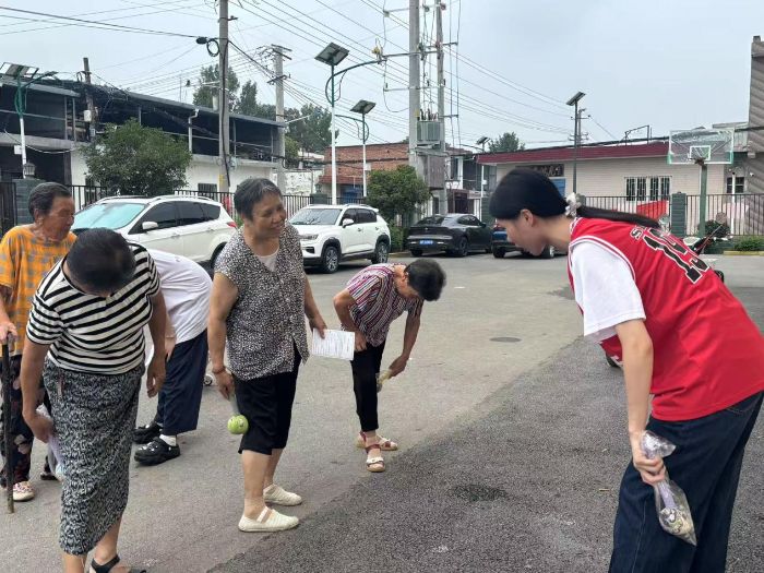 康健守护社三队“三下乡”围绕健康科普展开社会实践活动,以讲解骨质增生、骨质疏松、脑卒中的预防及康复法,还有拍八虚等养生知识为主,助力村民健康。