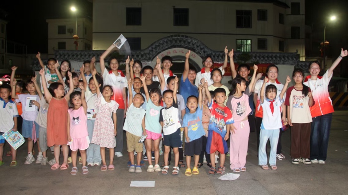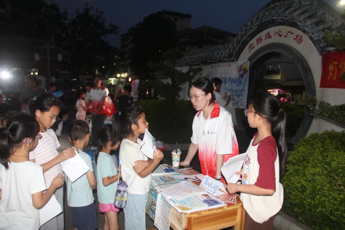 2025年7月8日晚,广东外语外贸大学法学院“三下乡”实践队伍灯塔引航行动队于广东省韶关市乳源县桂头镇的民法典公园开展“未成年法治教育”系列普法活动。八位广外青年紧扣“百千万工程”中“强化乡村法治根基”的核心任务,在盛夏热浪中播撒法治信念,吸引当地众多民众参与,场内氛围热烈,法治热情高涨。