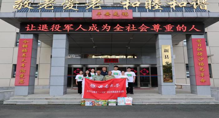盛夏暑意正浓,红色精神传扬不息。8月22日,西南大学“三下乡”社会实践团队怀揣赤诚之心,携带暖心礼物,踏入新县光荣院。这里,生活着为祖国建立与发展奉献热血、浴血奋斗的老兵与烈士家属,他们的人生岁月,承载烽火、藏着荣光,每一段故事,都是镌刻信仰与担当的厚重史书,诉说着家国情怀。