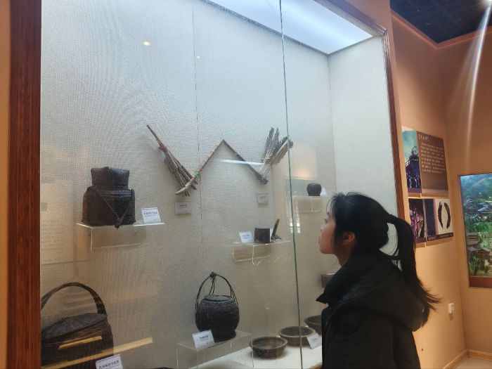 (图为实践队成员参观三江侗族博物馆。谭娜姿供图)