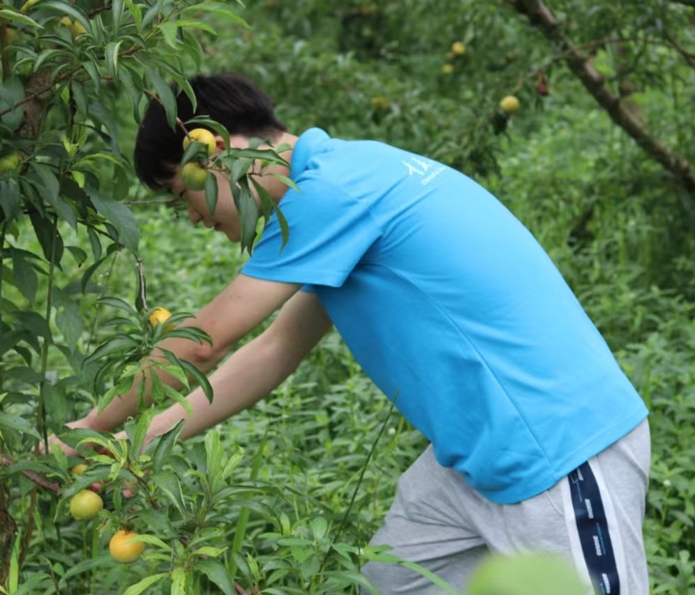 7月10日下午,历经半小时的步行,实践团成员们成功抵达了忠县新立镇的桃李梦园,在一片欢声笑语中,开启了今天下午的采摘之旅。