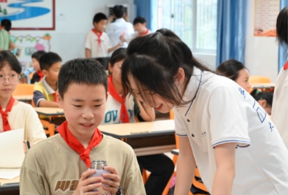 快乐的时光总是短暂的,下课的铃声结束了一天的课程。课堂上同学们和志愿者老师积极互动,学习知识,丰富自己的假期生活,课堂下,志愿者们则成为了同学们的的大哥哥大姐姐,相互交流不仅可以巩固课堂上讲解的知识,还可以帮助志愿者们了解孩子们的心理健康状态,更好的开展以后的支教工作。