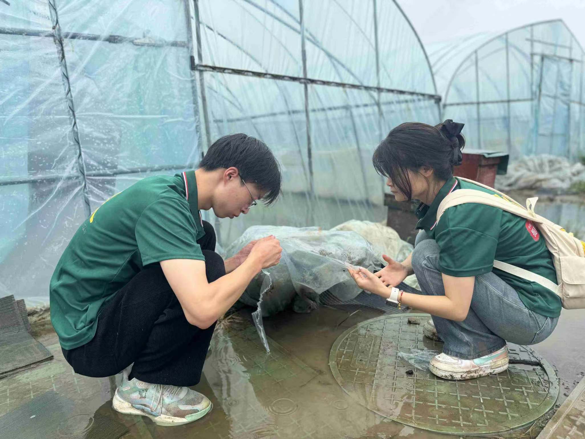 图为团队成员研究大棚薄膜 王凯供图 经过科普交流,采摘园负责人对新型转光薄膜技术产生了浓厚兴趣,并计划在下一个种植周期中率先尝试应用该技术,以检验其实际效果。如果新技术能够显著提升蓝莓葡萄的品质和产量,他们将积极考虑全面推广并宣传这项创新技术。