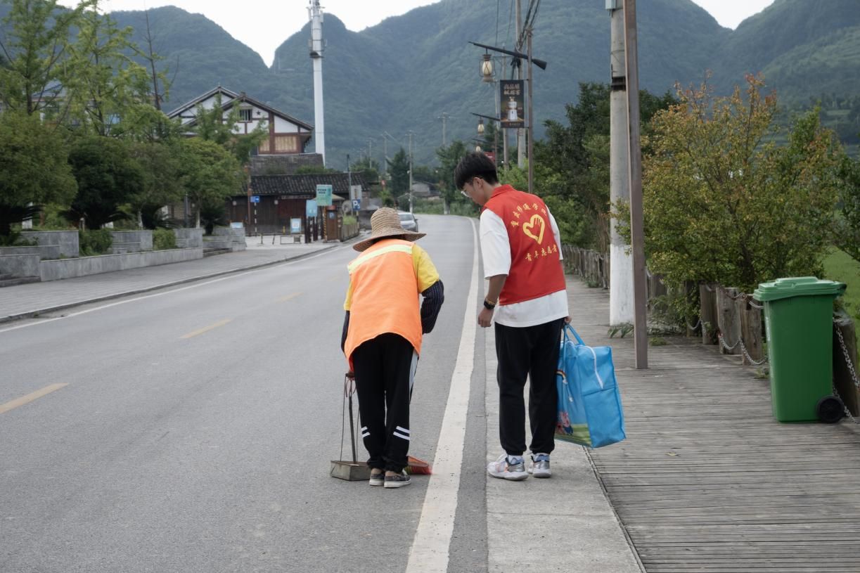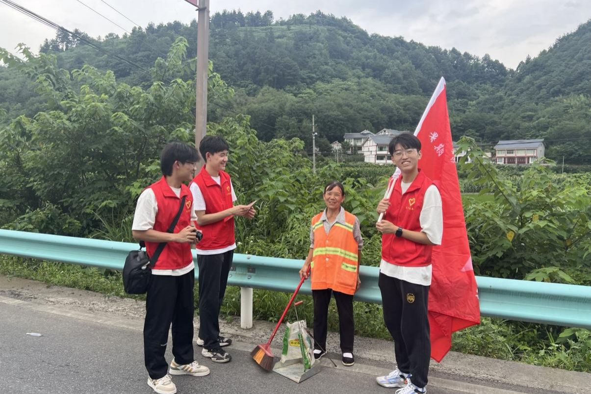 在深入探访花茂村的实地调研之旅中,“致远”宣讲团聚焦于生态文明建设的前沿阵地,特别将镜头对准了那些默默无闻、辛勤耕耘的环卫工作者。一次与一位长期负责乡村公路清洁工作的阿姨的深入访谈,让宣讲团成员们的心灵受到了极大的触动。这位阿姨,已在这条蜿蜒的乡路上默默奉献了超过十年的光阴,这一事实令在场的每一位同学都深感震撼。每日,当晨曦初破黎明,或许天边还挂着未散的夜幕,她便已踏上了工作岗位,以勤劳的双手迎接第一缕阳光。无论是酷暑难耐的夏日,还是寒风凛冽的严冬,她的身影始终如一,坚守在这条连接着村庄与外界的脉络上。“行走间清扫,清扫中前行……”这简单而重复的动作,对她而言,不仅是职责所在,更是对这片土地深沉的爱与承诺。她用这份平凡中的伟大,日复一日地守护着乡村公路的洁净与美丽,成为了花茂村生态文明建设中不可或缺的一抹亮色。当团队成员询问,是什么原因令她十年如一日坚守岗位时,她说:“过去我们这里是落后的村子,多亏了国家政府的建设,老土路才变成今天的柏油马路,能让这条回家路变得干净整洁,我心里也高兴,习总书记不是也说了,建设美丽中国,我能把这条路扫的干净,也是贡献一份力量。”