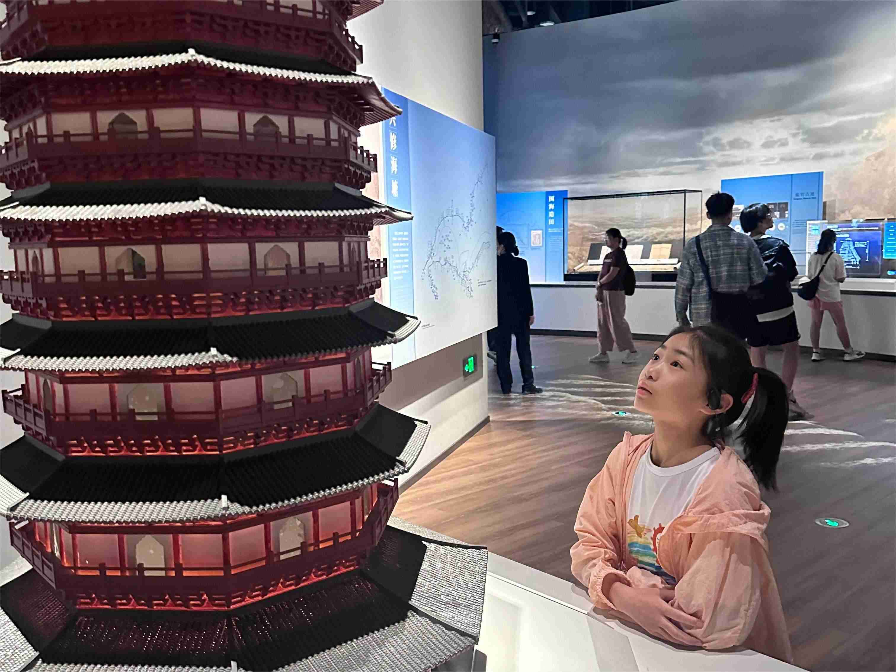 小朋友正在参观中国丝绸博物馆中的唐文化展馆