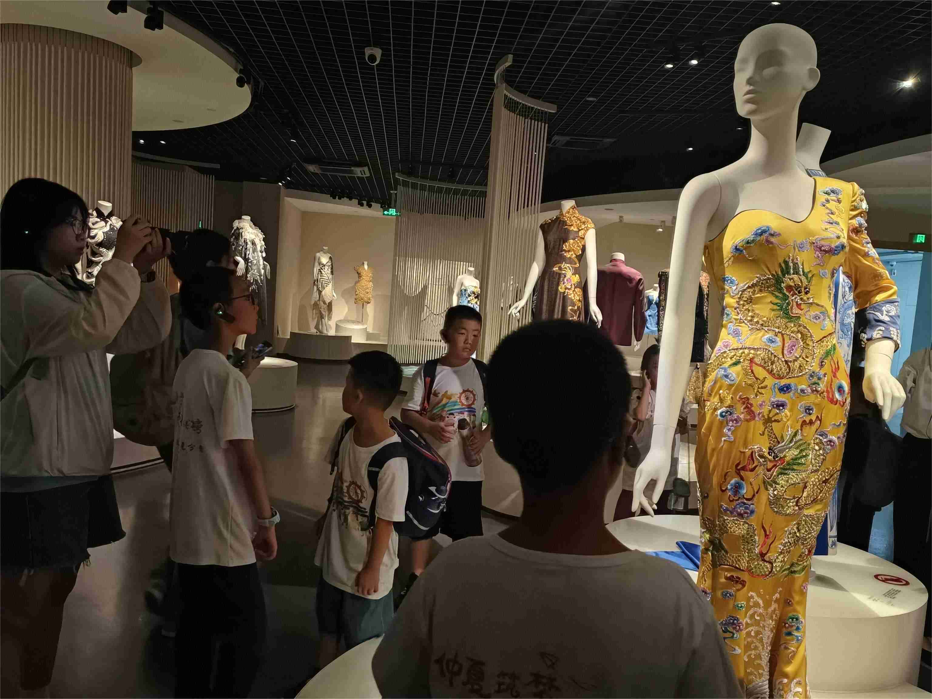 小朋友正在参观中国丝绸博物馆的时装展馆