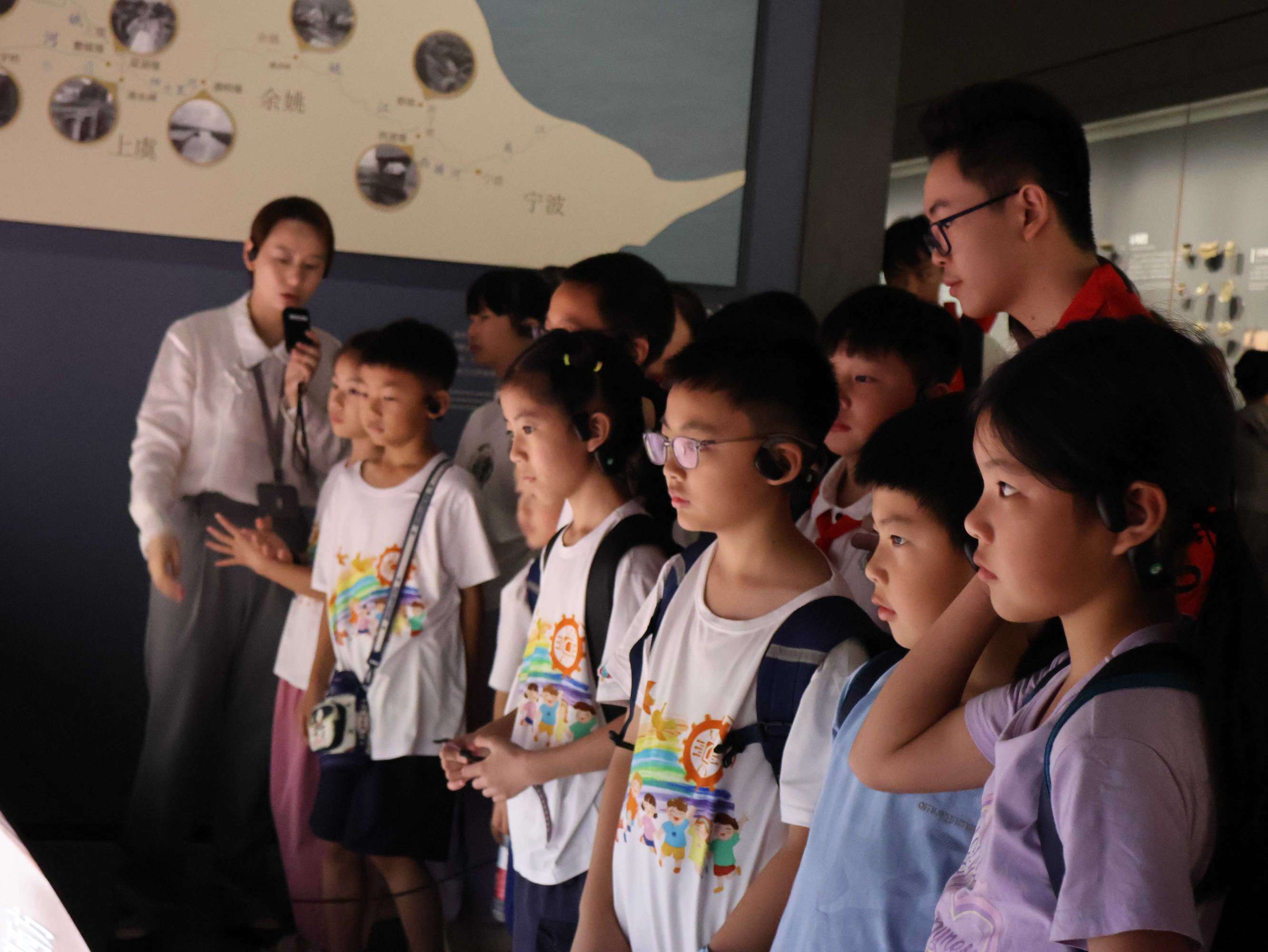 小朋友正在参观浙江省博物馆讲解老师的讲解