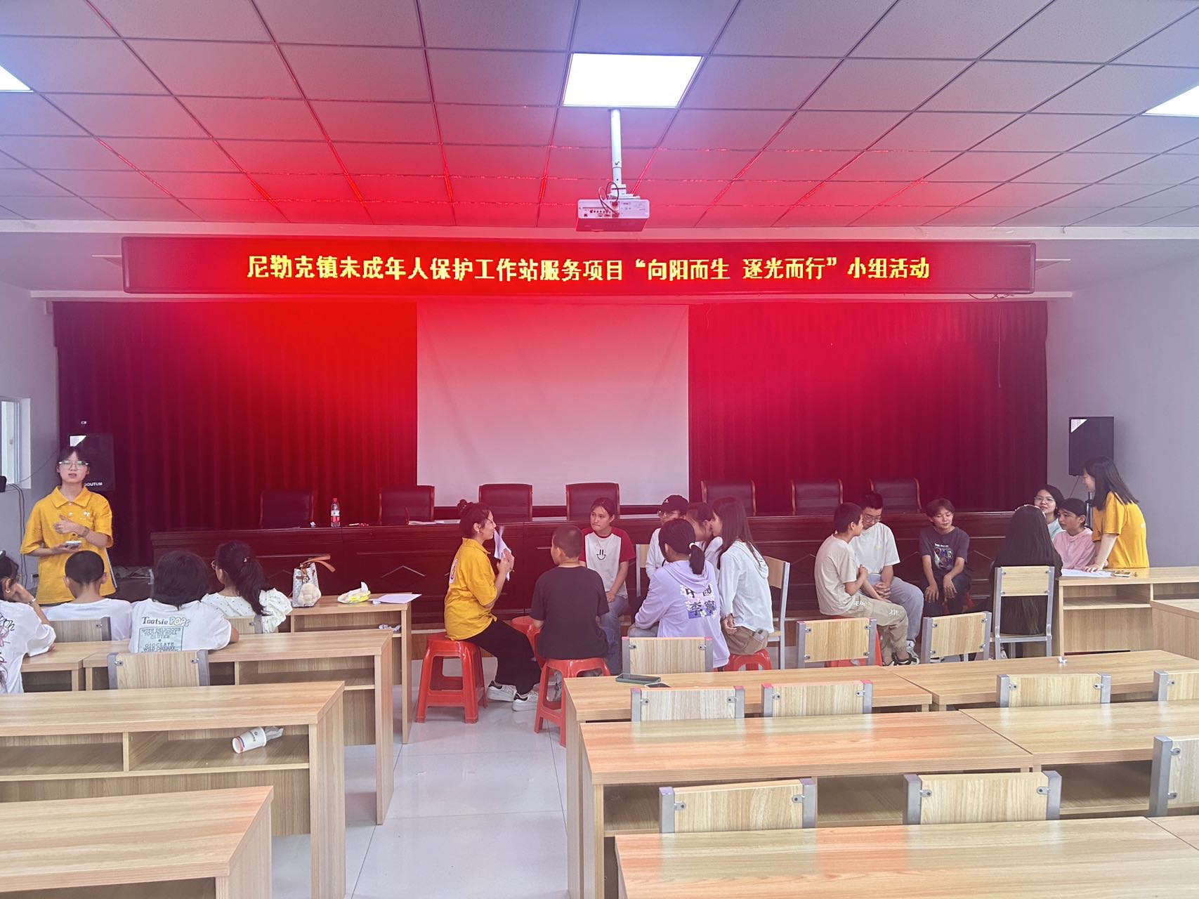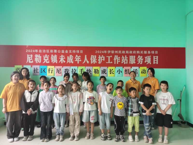 南财社工系“萤火虫小分队”的队员们,在尼勒克县未成年人保护站作为社工志愿者,开展暑期实践和服务。服务内容主要有:一是家庭探访,开展困境儿童的需求评估和入户关爱服务;另一方面运用社会工作专业方法,对35名来自维吾尔族、哈萨克族、汉族等多民族的儿童,按照不同年龄阶段划分为两组,开展小组工作服务,为少年健康成长赋能。图2:南京财经大学法学院实践工作启动合照 一和程新川 摄