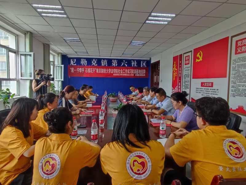7月16日,在尼勒克镇第六社区,隆重举行了“尼—宁牵手,石榴花开”2024南财法学院尼勒克县暑期社会实践启动仪式暨社会工作专业实习实践基地挂牌仪式。尼勒克县民政局潘雄书记对南财师生一行的到来表示热烈欢迎;江苏常州武进援尼工作组副组长、尼勒克县委常委、副县长王迪对本次活动作了热情洋溢的致辞,提出“希望通过此次共建促进深度合作,在基层社区治理、为小为老专业服务等方面多多助力,同时也希望新疆籍大学生们能够愿意回疆建设家乡!”南财法学院夏清瑕教授也介绍了南财法学院和伊犁共建的渊源,在2012年就为伊犁的近50名社区工作者在南财开展一年的培训,希望借此次共建为大学生提供实践平台,为就业拓展空间。新疆伊宁一和社会工作服务中心理事长唐伊梅老师和夏清瑕教授为基地揭牌。