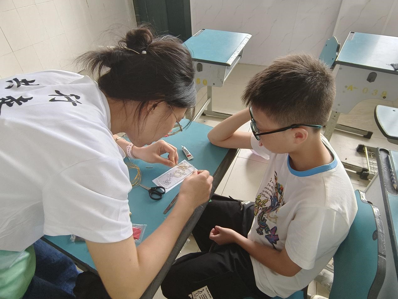 非物质文化遗产是中华优秀传统文化的重要组成部分,蕴含着中华民族特有的精神价值,是中华文明绵延传承的生动见证,为引导乡村学子感悟、弘扬和传承中华优秀传统文化,7月24日,浙江科技大学“行走青春·共富南屏”暑期社会实践队,在天台县南屏学校开展了“掐丝珐琅手工”课程。