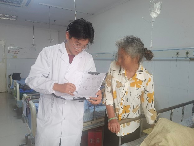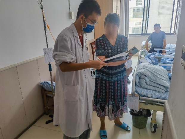 与此同时,实践队的三名成员也积极行动起来,他们深入医院病房,与肿瘤患者面对面交流,开展了一场细致的科普需求调研。通过问卷调查、访谈交流等方式,他们收集了大量关于患者对癌症预防、治疗、康复等方面的疑问与需求。这些宝贵的调研数据不仅为团队未来制定更加精准、有效的科普计划提供了重要参考,也进一步加深了实践队员对肿瘤患者实际需求的了解与认识。