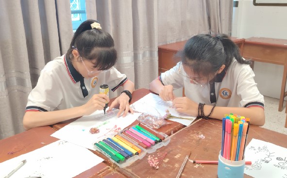 实践团成员以艺术疗愈活动为特色,设计了情绪调节与艺术手工课堂,重点引导中学生们“认识情绪,合理调节情绪”。通过滴胶永生花和胶囊画的制作,让学生通过色彩和形状的运用表达个人情绪。通过激发学生们的创造力和想象力,使学生在创作过程中体验到了修身养性与心态平和的益处,促进了个人的情感发展和心理健康。