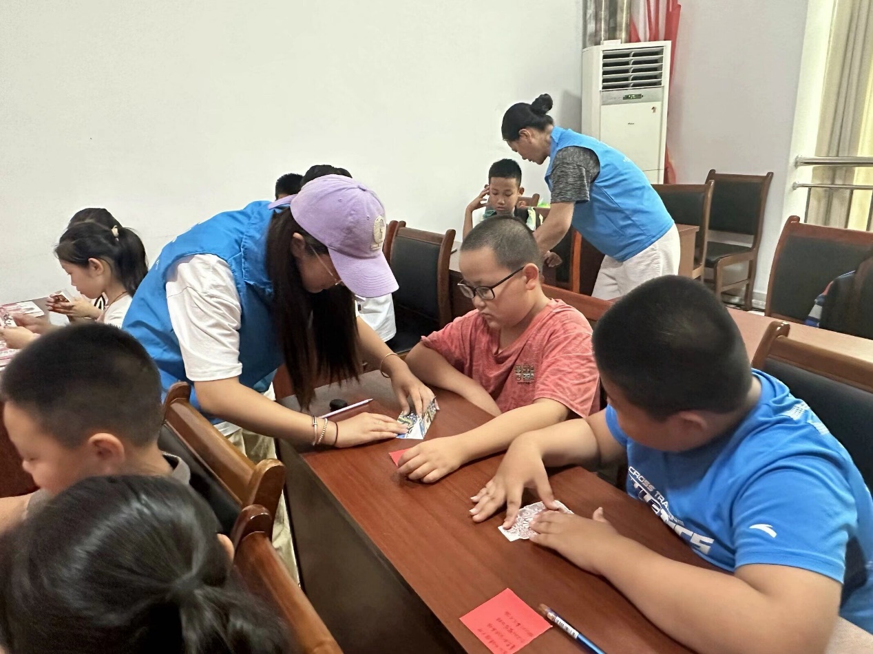 实践队员们准备了丰富的教学材料,从基础的练习纸到高质量的宣纸,应有尽有。初学者在队员的指导下,练习写简单的汉字,感受毛笔在宣纸上运笔的独特体验。而对于有一定基础的参与者,队员们则提供了更为复杂的字帖和范本,帮助他们提高书法水平。