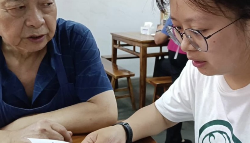 图为实践队员采访猪儿粑非遗技艺传承师傅。王雪 供图