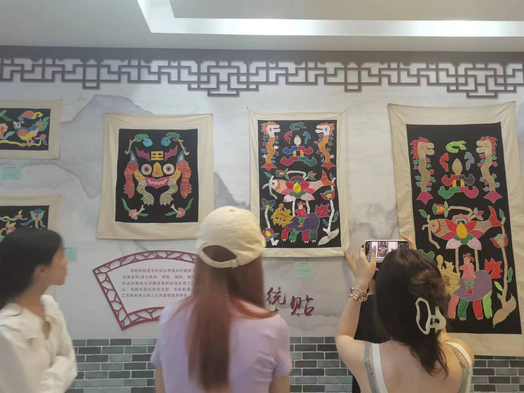 在展厅的一角,洪老师早已等候多时。他是一位对阳新布贴有着深厚研究和独到见解的学者,也是这一非物质文化遗产的重要传承人。随着他的引领,队员们缓缓步入了一个关于阳新布贴的世界。