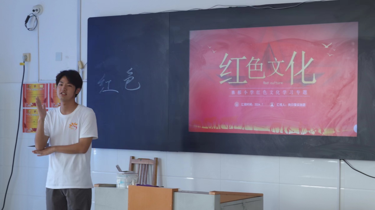 习近平总书记曾说:“红色江山来之不易,守好江山责任重大。要讲好党的故事、革命的故事、英雄的故事,要把红色基因传承下去,确保江山后继有人、代代相传。”向日葵暑期社会实践团带着对历史的敬畏与对未来的期许,在寨郝中心学校举办了红色文化课堂,为孩子们的心灵播撒下了一颗颗传承红色基因的种子。