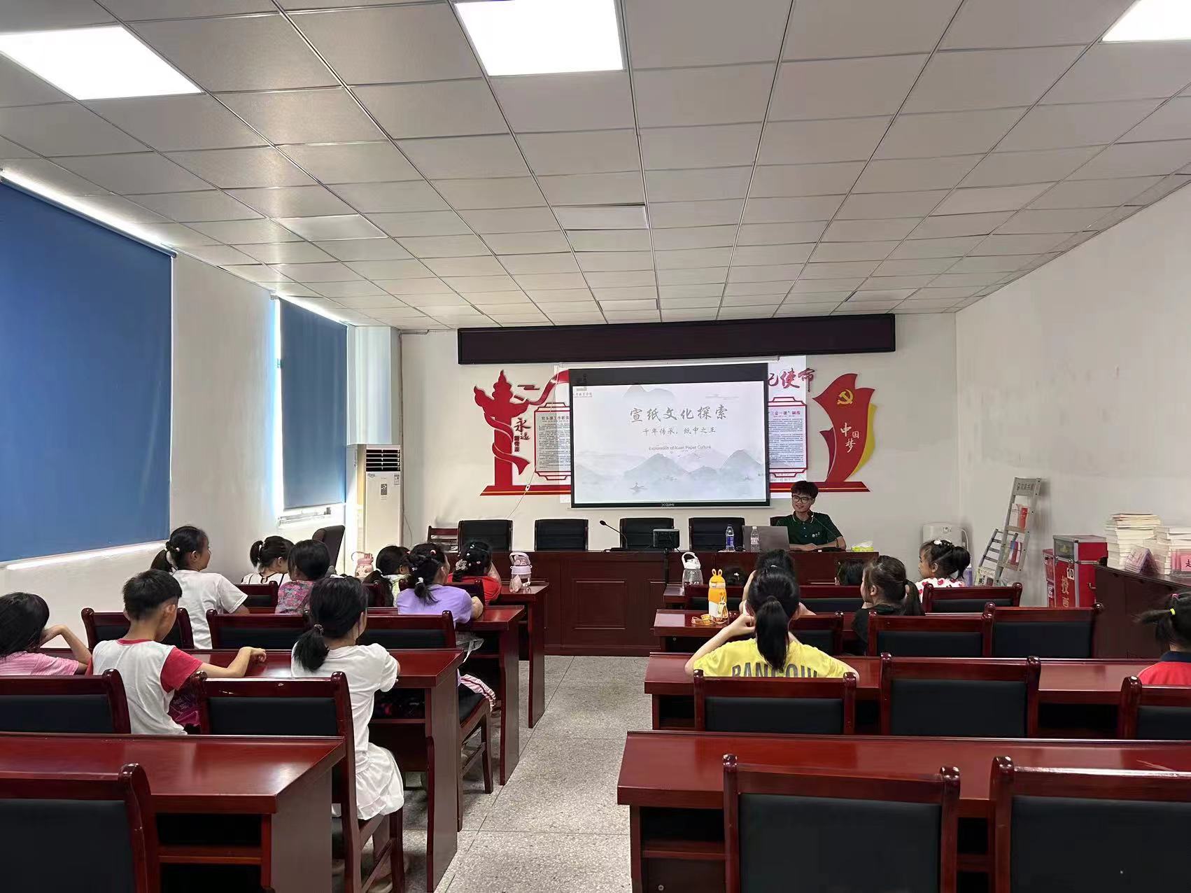 (图为团队成员向孩子们传播宣纸文化)