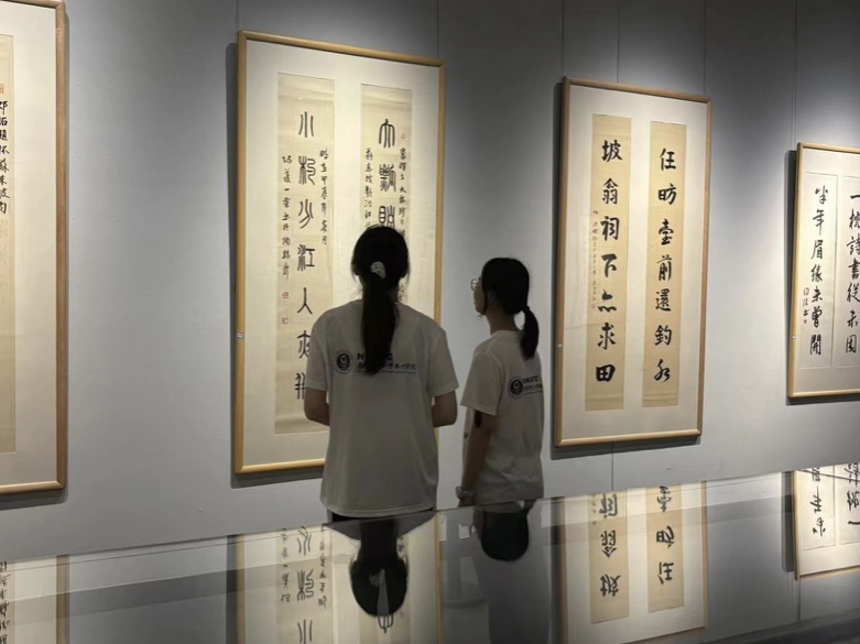图为团队成员在欣赏相关书法作品 图片提供 张禾