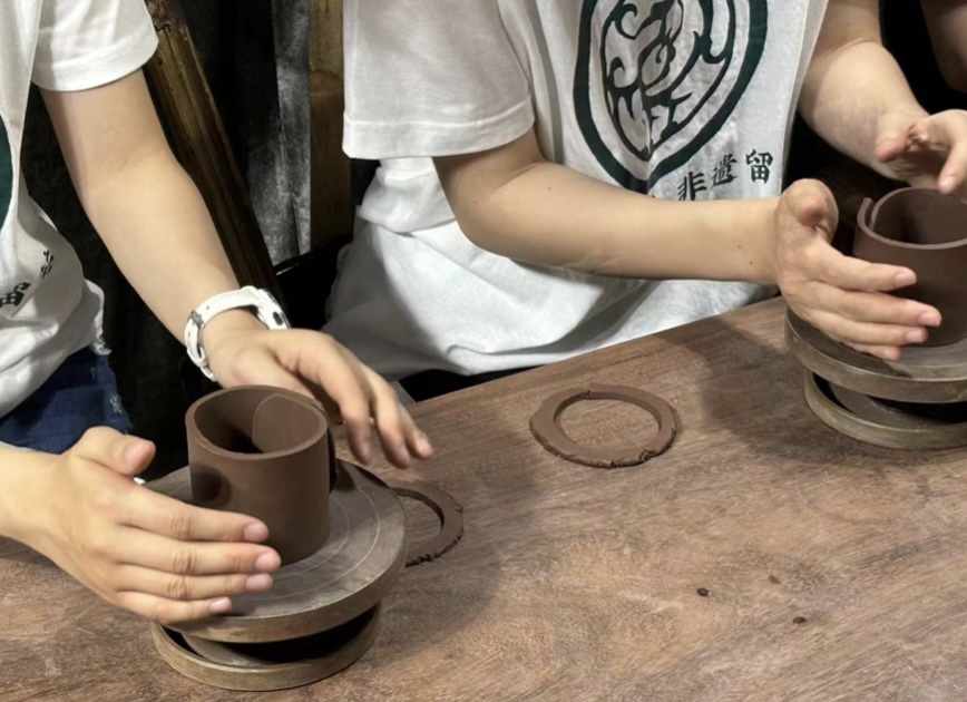 图为团队成员在体验制作紫砂杯 图片提供 张禾