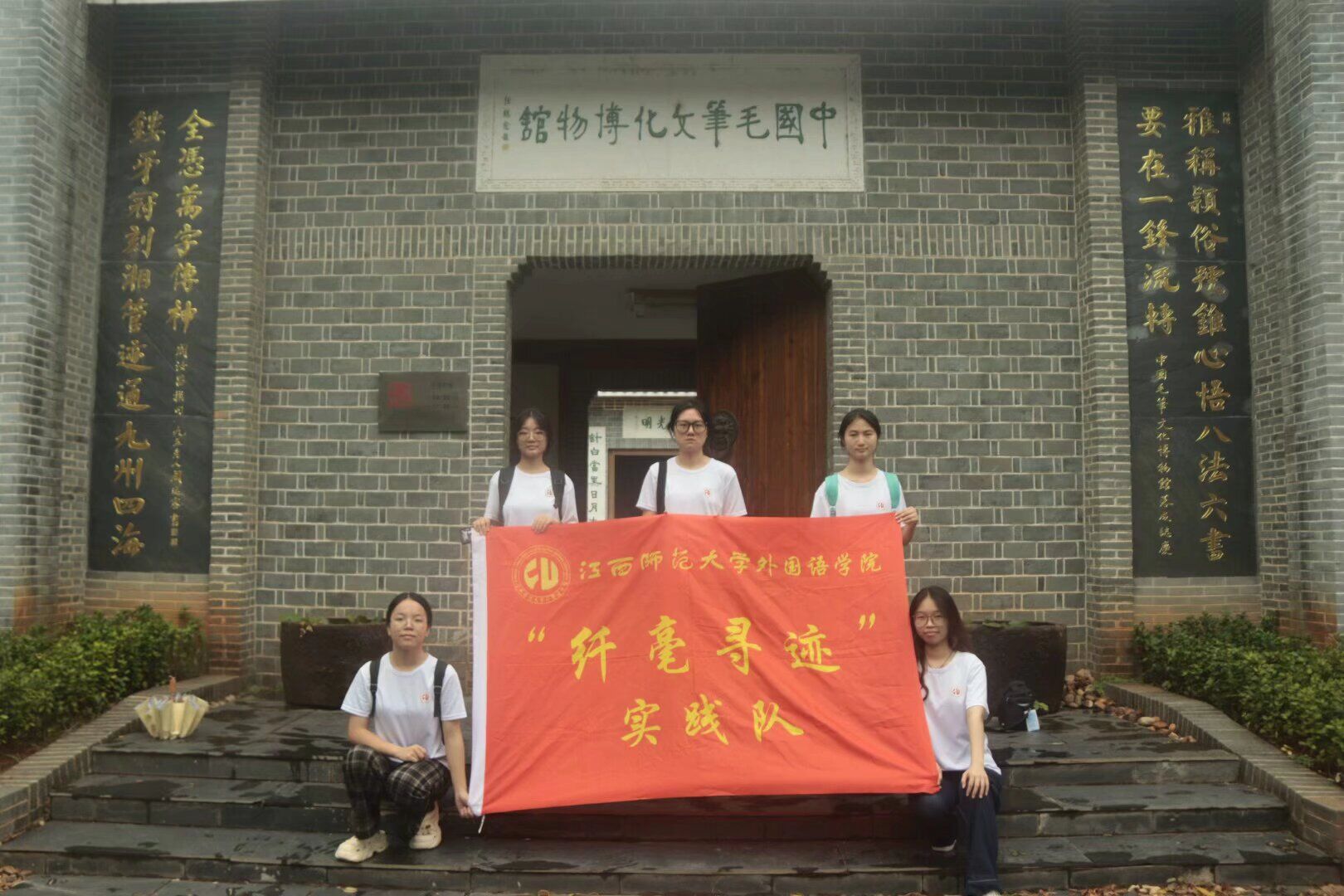 在中国传统文化的长河中,毛笔作为书写工具,不仅承载着千年的文化记忆,更是中华民族智慧的象征。为积极响应习近平总书记关于保护传统文化的号召,加强文化遗产保护传承,弘扬中华优秀传统文化,江西师范大学外国语学院纤毫寻迹小队于7月25日至27日踏上了探寻之旅,来到了享有“中国毛笔之乡”美誉的江西省南昌市进贤县文港镇,深入挖掘毛笔文化的深厚底蕴。
