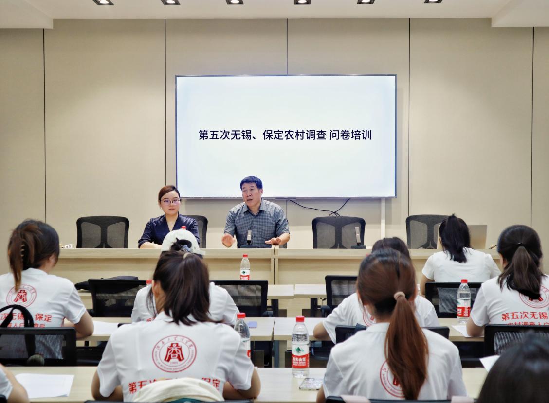 无保调研再出发,寻迹百年新征程7月8日上午,实践团抵达无锡市惠山区玉祁街道玉东村村委会,首先开展“第五次无锡、保定农村调查”培训会。会上,中国社会科学院经济研究所隋福民教授作调查重点提示,江南大学商学院分团委书记王璁作安全警示教育。项目组通过实例分析与模拟调查等形式,帮助团队成员明晰此次项目调查的时代背景和历史意义,理解调查问卷设计和调查对象所处社会结构。