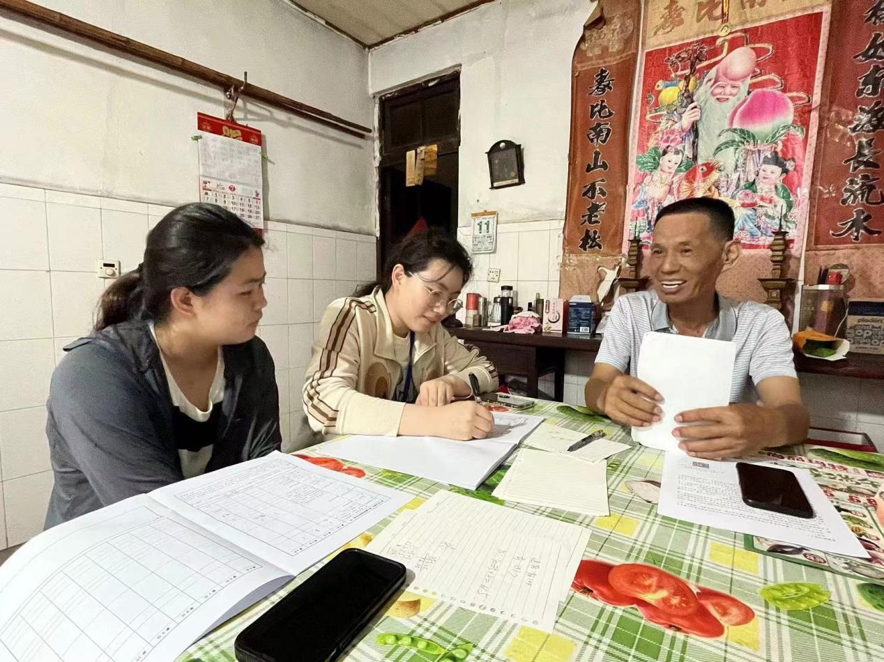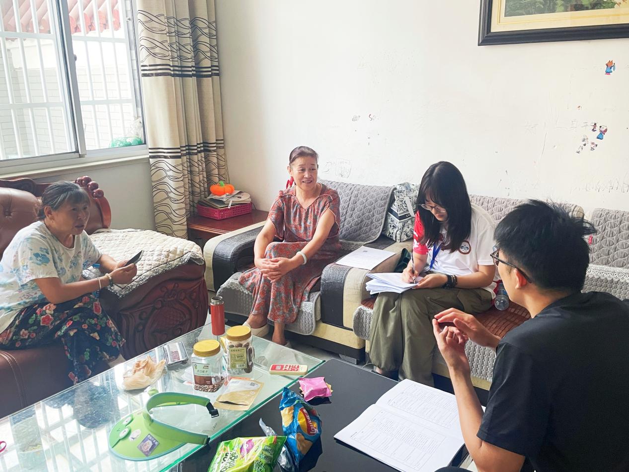 “青年大学生要深入基层调研要经常到田间地头看一看,在田间地头学知识、察实情。”为期一周的入户调查中,实践团不惧酷暑暴雨,先后前往唐家宕、文湖苑、工厂、宿舍等地追踪访谈调查对象后代。