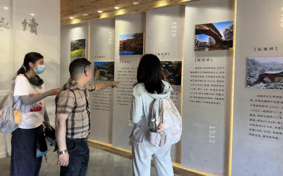 团队首站来到泰顺文化中心,参观研学泰顺文化中心的廊桥历史展区,通过丰富的图文资料和实物模型,展示了泰顺廊桥的起源、发展、繁荣和传承。现泰顺县境内保存有30余座唐、宋、明、清四代的古廊桥,其中最有名的要数北涧桥、溪东桥、文兴桥等。