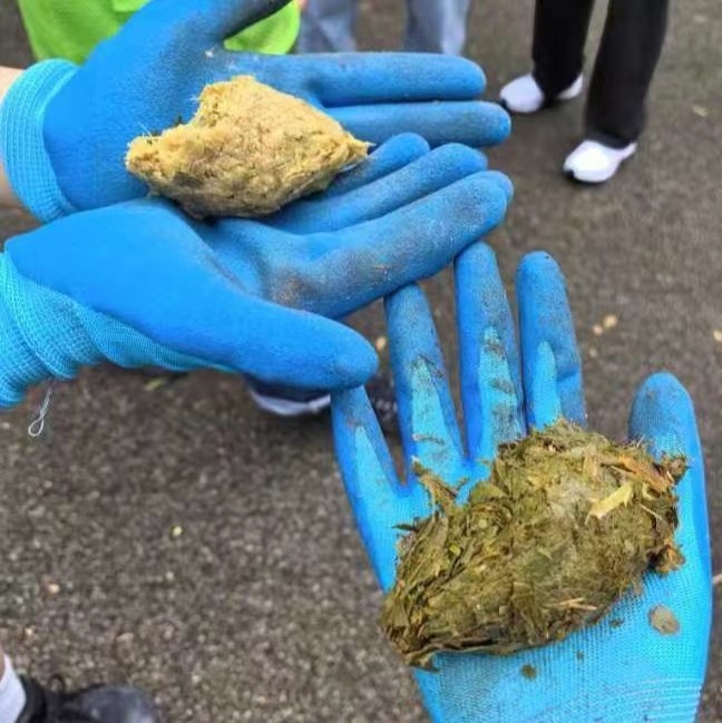 实践队员们身着特殊的工作服,带上手套,走近大熊猫的生活区域。首先映入眼帘的是一片看似凌乱但又有着某种规律的场地,地上散布者大大小小、形状各异的粪便。他们拿着专用的工具,弯下身子,寻找着目标。在铲起粪便的瞬间,能感受到他的重量和湿度。有的粪便还带着未完全消化的竹子纤维,呈现出独特的纹理和颜色。在铲屎过程中,他们时刻留意着周围大熊猫的动态,它们有时候会好奇地凑过来,用那圆溜溜的眼睛看着他们的举动,仿佛在审视他们的工作是否合格。