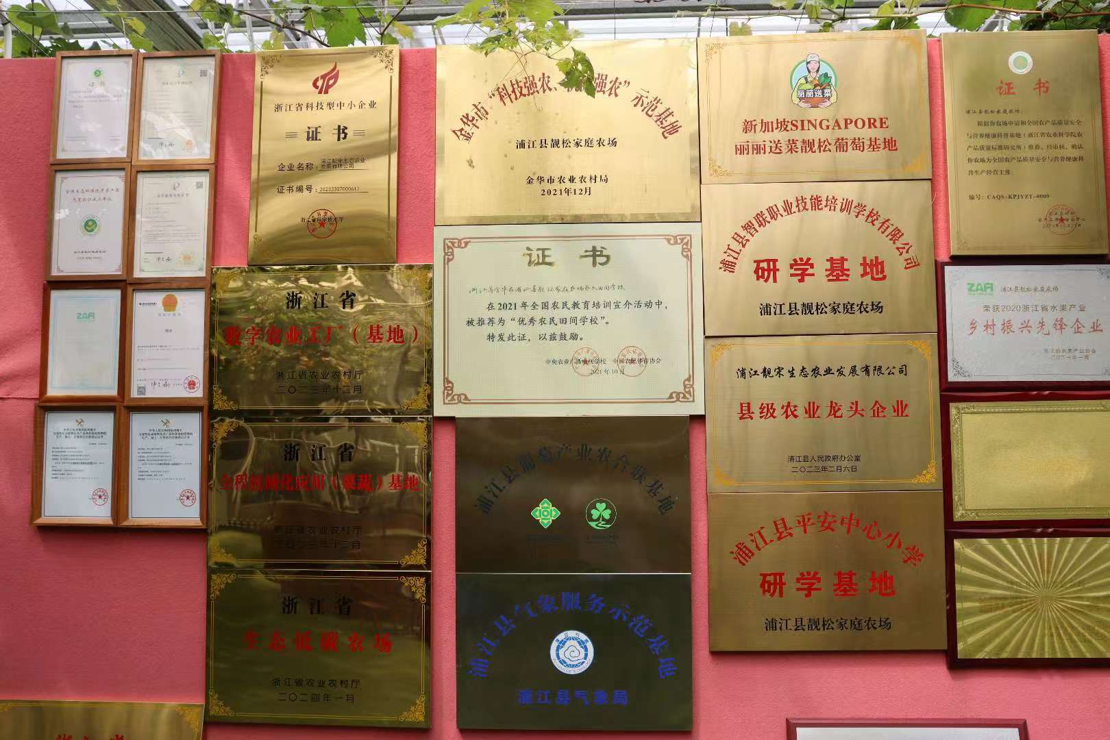 “中国最美葡萄园”“G20杭州峰会葡萄专供基地”“浙江省‘现代农业科技示范基地’”……这些响当当的荣誉称号都是靓松家庭农场的头衔。