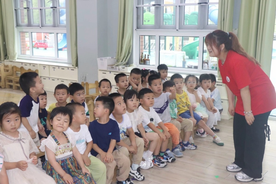 图为 调研团成员聆听儿童关于垃圾分类的了解