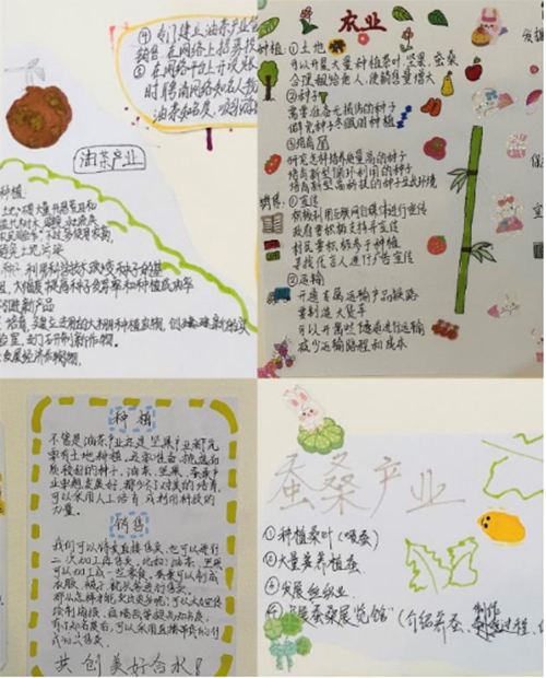 在“特色产业家”的课程中,队伍带领合水青少年们将本土产业探索认识与个人职业未来规划相结合,采用“理论+实践”的授课模式深度融合产业理论教学与实地研学考察。实践生发理论,队伍组织当地学生在油茶产业园、供港蔬菜基地等地开展实践研学与实地考察,并组织学生小组讨论为合水产业发展撰写策划案,从而加强青少年对家乡经济的深入理解和培养其产业思维。同时,面向当地200+名青少年开展个人职业生涯规划课程,帮助其明晰个人发展与家乡产业方向的深度结合。家乡产业策划书、个人职业规划书上满载着青少年智慧与热情,不仅彰显了年轻一代的责任与担当,更为合水镇的产业升级与乡村振兴蓝图添上了青春靓丽的一笔。