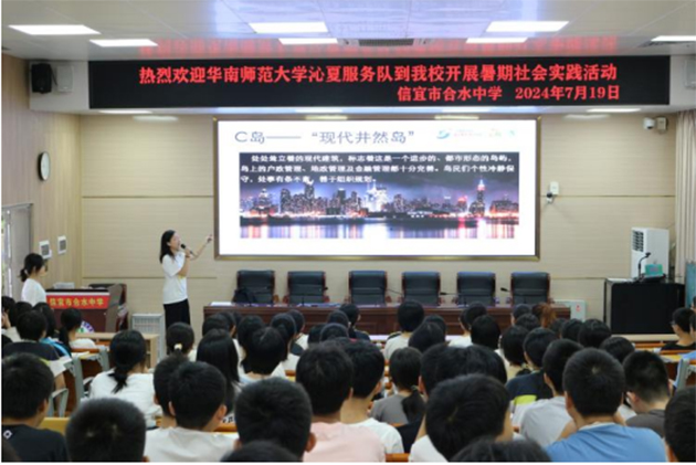 2024年7月15日至21日,沁夏服务队宣讲教育组赴茂名市信宜市合水镇合水中学开展为期7天的暑期团校夏令营。为积极响应国家乡村振兴战略与“双百行动”的号召,契合“根植乡土情,共筑治理梦”的时代旋律,队伍成员创新性地将乡土文化符号、文化情感、文化行为植入综合实践活动课程中,打造出五大“合水角色体验营”,包括“乡土小诗人”——诗韵乡音颂合水;“非遗小传人”——文化传承深底蕴;“家乡小导游”——乡景导赏促文旅;“特色产业家”——产业策划谋发展;“小小治理家”——绘梦乡土共治理。本次夏令营共开展课程35节,教授学生1000余人次。夏令营以期引领青少年们深入探寻家乡文化的深厚底蕴,激发他们积极投身社会治理与乡村建设的热情与决心,促进本土学生将个人发展与乡村振兴紧密结合,为合水镇的未来发展播撒下希望的种子。
