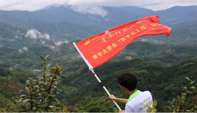 (图20油茶山上青年大学生“百千万工程”突击队旗帜飘扬)